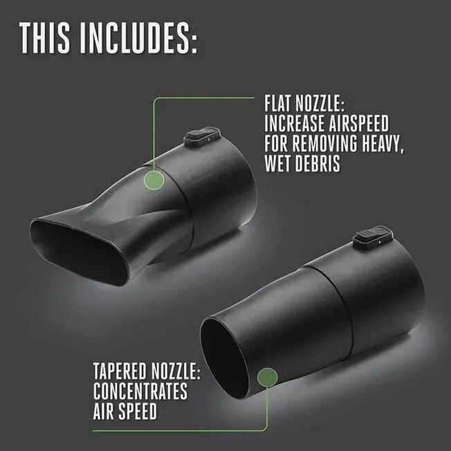 • Turbo button delivers 650 CFM, up to 180 MPH with tapered nozzle attached