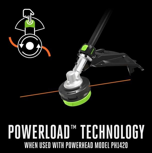 DETAILSThe EGO POWER+ 16" Carbon Fiber String Trimmer Attachment with POWERLOAD™ is part of the EGO POWER+ Multi-Head System. The string trimmer attachment features a lightweight and durable carbon fiber shaft protected by a lifetime warranty. The string trimmer attachment features a 16-inch cutting swath for convenient and efficient trimming to get your tough jobs done quickly. The string trimmer head features POWERLOAD™ technology (compatible with PH1420 only) to automatically wind your trimmer line with the push of a button, or Rapid Reload (compatible with PH1400) for quick and easy line loading by lining up the arrows on the head, inserting the line, and twisting. EGO attachments are designed specifically for your EGO POWER+ Power Head (PH1400, PH1420, available separately) and offer the highest quality and performance. |