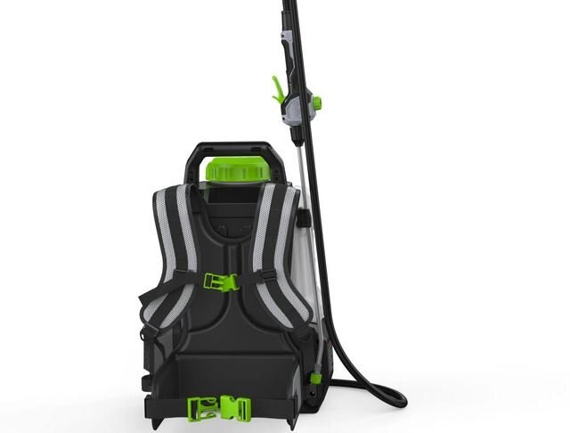 The EGO POWER+ 4 Gallon Backpack Sprayer delivers up to 350 PSI for a powerful, even spray. Its wand features an integrated adjustable pressure knob to dial in total pressure and flow control with your fingertips, with a maximum flow rate up to 0.6 GPM. |