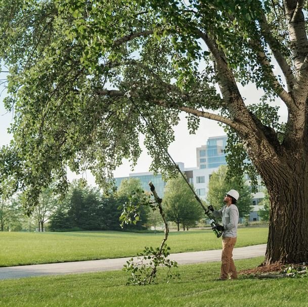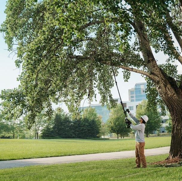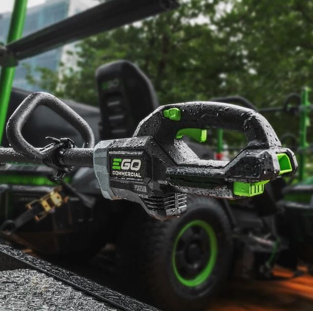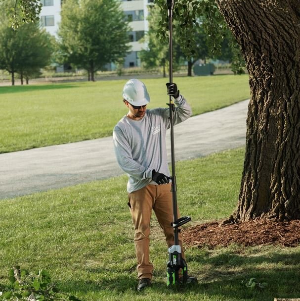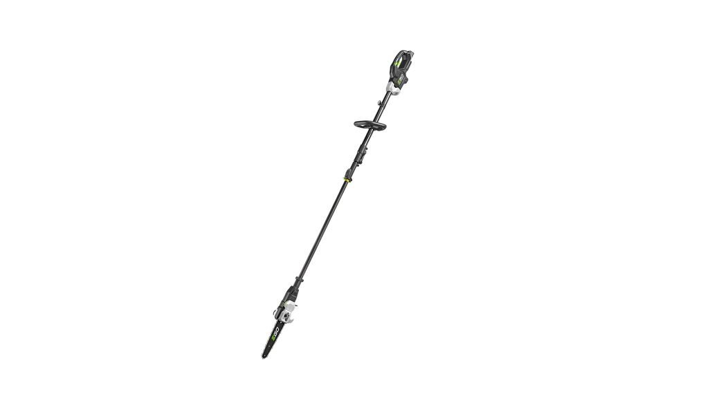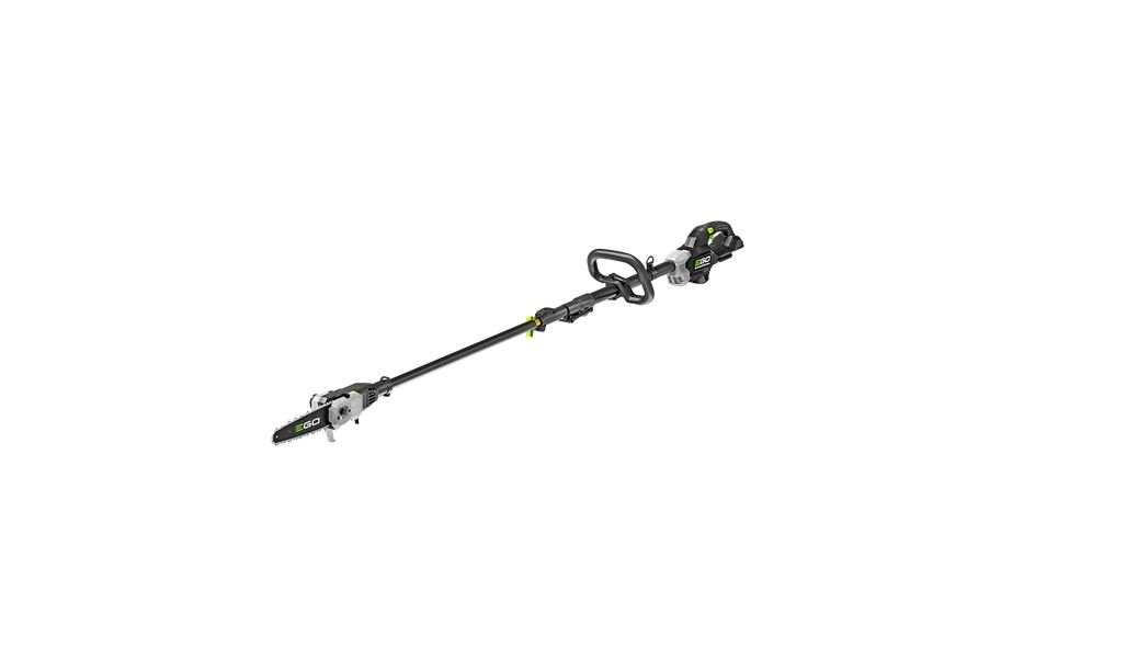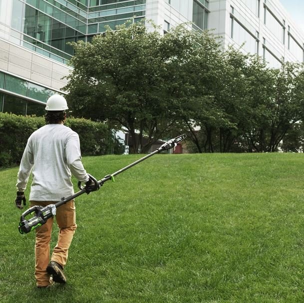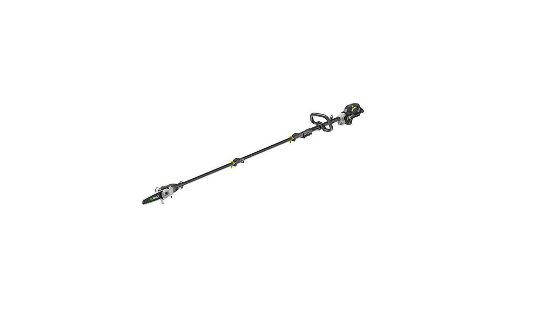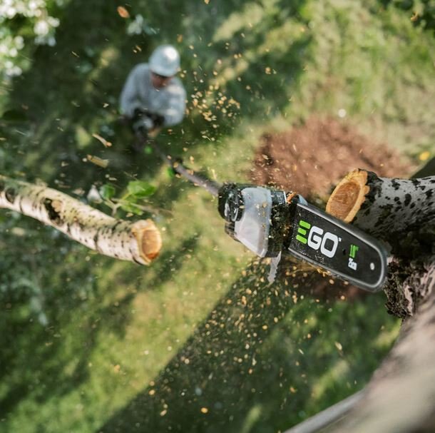 The EGO Commercial 10” Telescopic Pole Saw features a strong and light telescopic carbon fiber shaft along with a 1,200W high-performance brushless motor that delivers instant torque for all-day power equivalent to a 25cc gas engine. |