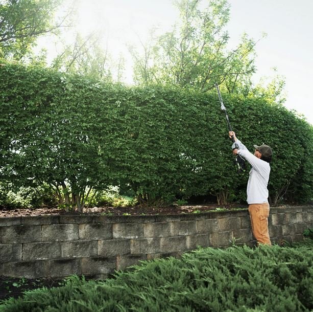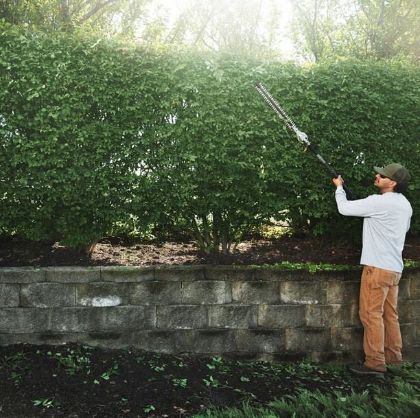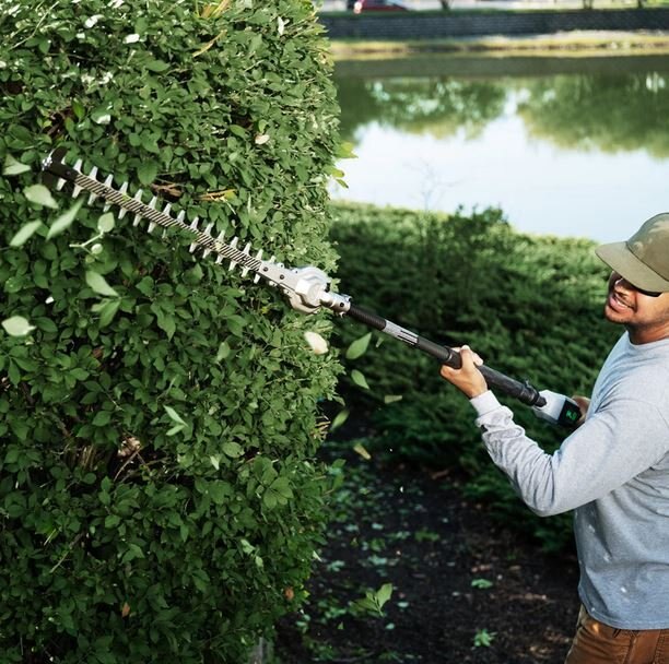 Designed for heavy-duty professional use, the EGO Commercial 21” Extended Pole Hedge Trimmer features an industrial-strength carbon fiber shaft and rail along with a 1,000W high-performance brushless motor that delivers power equivalent to a 25cc gas engine. |