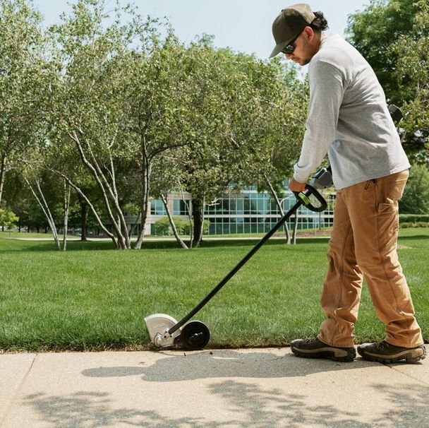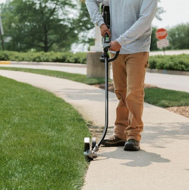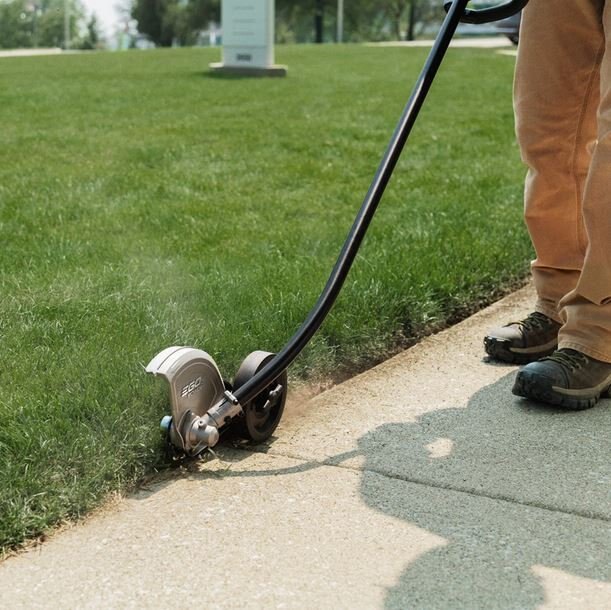 | Delivers a clear line of sight for quick work while maintaining crisp edges along sidewalks, driveways, pavers, and curbs. |