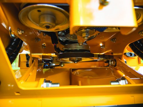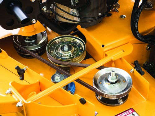 In our world, getting a flat front tire is not fun. That's why all our heavy-duty mowers have large, flat-free casters with deep-groove ball bearings and bearing caps. The tires are molded rubber with a small, hollow section to soften the ride. The large, well-sealed, deep-grove bearings don't require maintenance and almost always outlast the tire. The bearing caps keep twine and landscape flags from getting wrapped around the axle and damaging the bearings. Walk behinds use flat-free tires mounted on caged roller bearings and the Stander B™ uses pneumatic tires on sealed ball bearings.