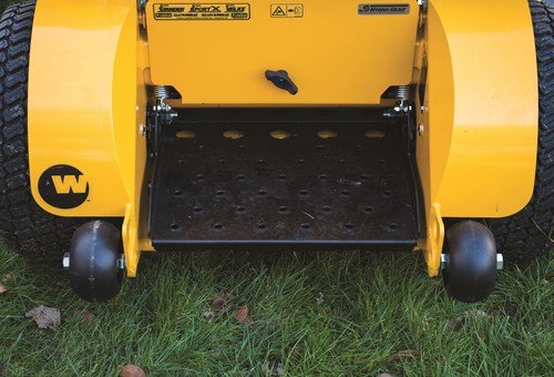 Leveling the deck is critical for an excellent cut. In most cases, the front of the deck should be ¼''lower than the back of the deck. This allows the grass to be clean cut once rather than bruised by the mower blade hitting the grass blade many times. All floating deck Wright mowers are equipped with either a bolt-type adjustment or a pivoting adjuster making it easy to set your deck to the correct height and pitch to match the your tire wear or preferred tire pressure.